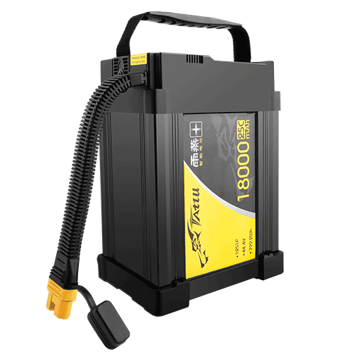 Tattu雨燕18000mAh智能无人机电池电压44.4V,电芯组合12S1P,功率799.2Wh,最大持续放电电流100A,带 AS150U 插头,适用于农业植保、安防测绘、电力巡检等行业。