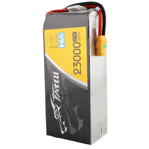 - 容量:23000mAh - 配置:6S1P / 22.8V - 放电率:25C - 最大瞬时放电:50C - 净重(±20g):2474g - 200Wh/kg的能量密度 - 至少300+次循环寿命 - 平衡器连接器型号:JST-XHR-7P - 尺寸:208mm 长 x 91mm 宽 x 62mm 高