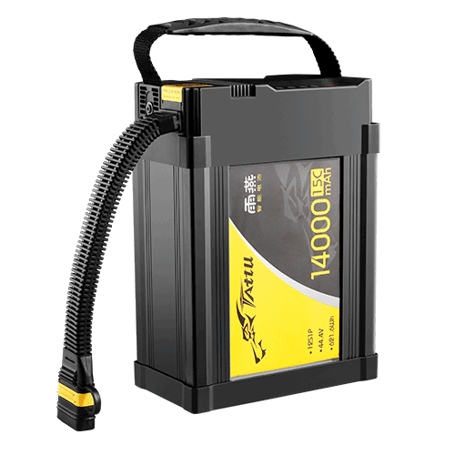 Tattu雨燕14000mAh智能无人机电池的是电压44.4V,电芯组合12S1P,功率621.6Wh,最大持续放电电流100A,带 AS150U 插头,适用于农业植保、安防测绘、电力巡检等行业。