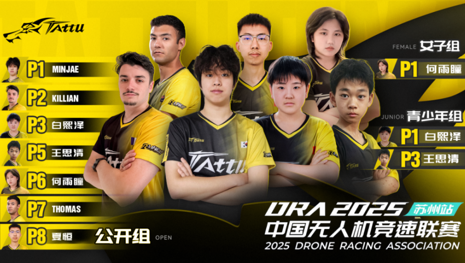 7 月 29 日至 8 月 1 日近三百名飞手齐聚草原赛道“翼动逐风” 间,鏖战正酣!Tattu飞手一路领跑,强势掌控全场!公开组前七名、少年组前四被我们包圆了~恭喜所有Tattu飞手,在本次赛事中取得优异的成绩~ -