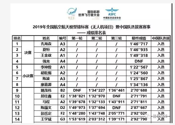 ,第八名Sam。再次恭喜各位成功晋级无人机国家队!