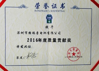 深圳市质量贡献奖(2016)