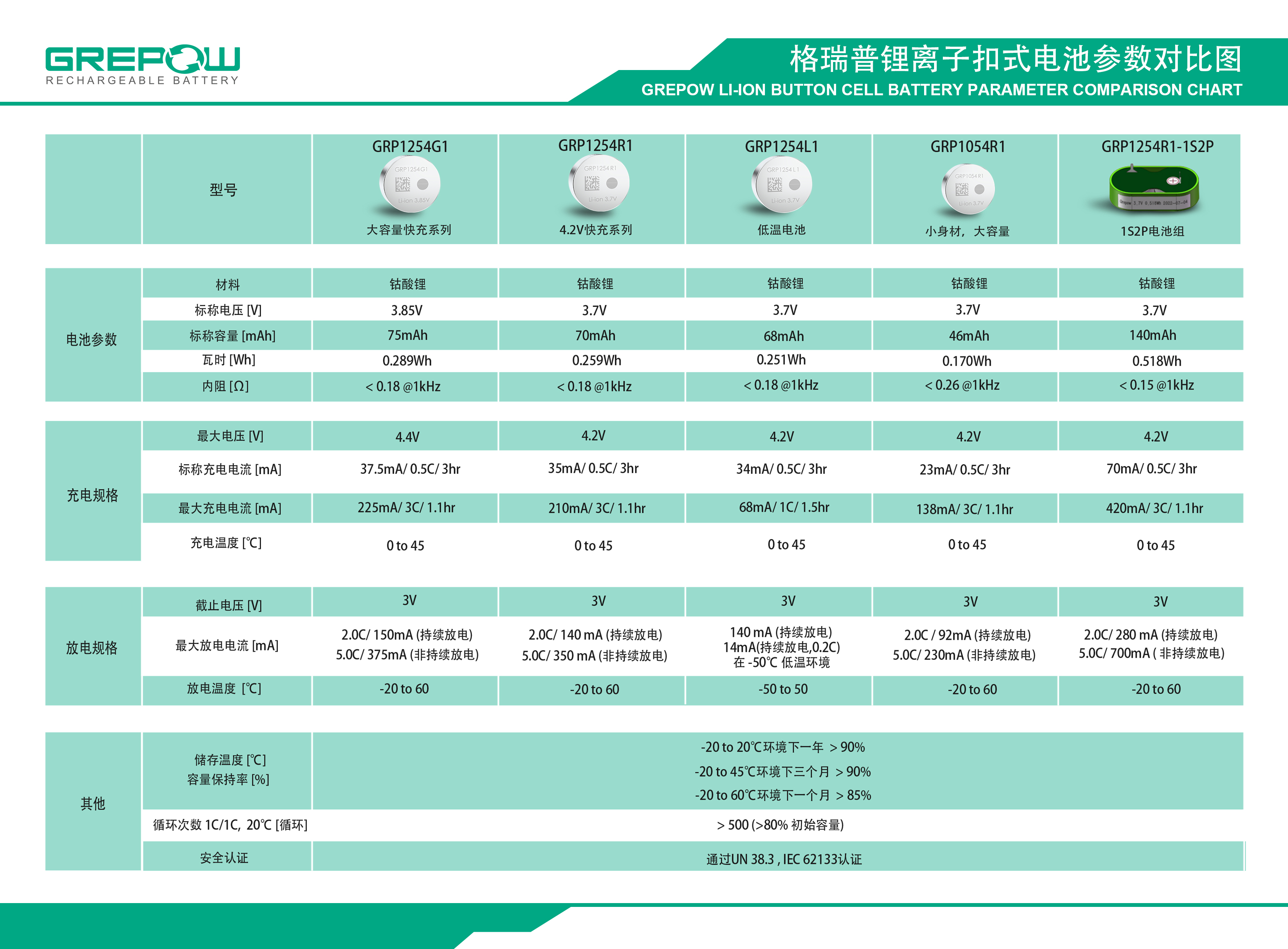 格瑞普扣式电池 | GRP1254R1 规格书